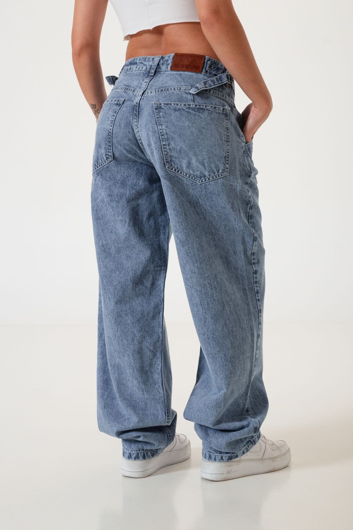 Jean Baggy Celeste Nevado con Hebillas (Rígido)