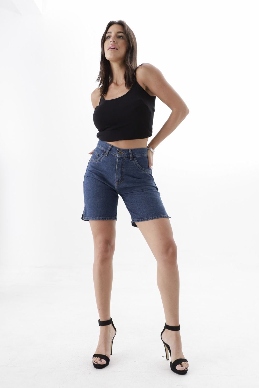 Nuestras bermudas de jean tiro alto están confeccionadas con denim de alta calidad,