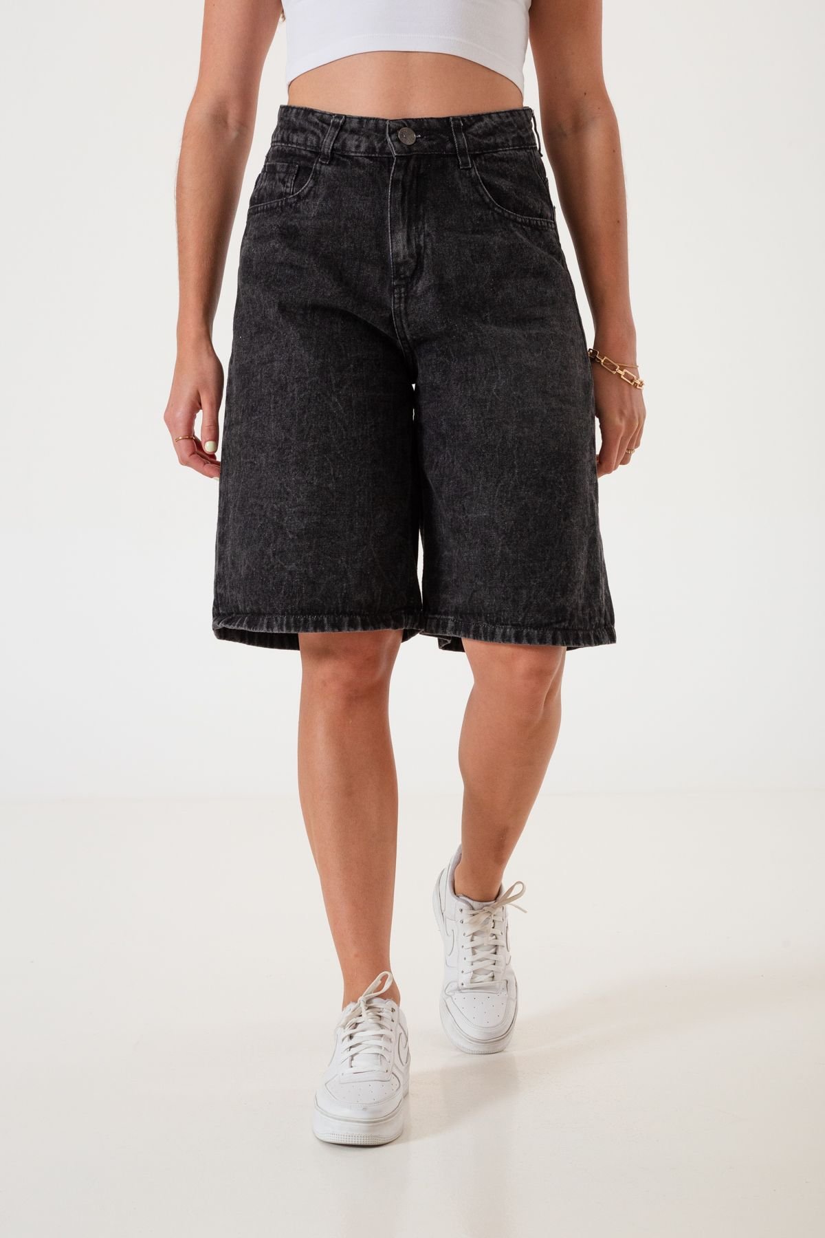 Nuestras bermudas de mujer en color negro nevado son la elección perfecta para los días cálidos.
