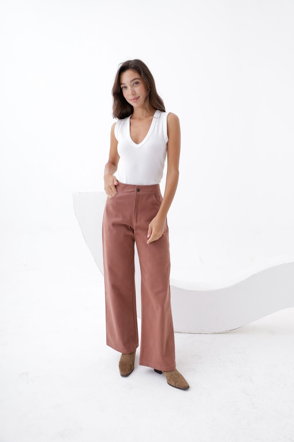 Pantalón Tiro Alto corte clásico.