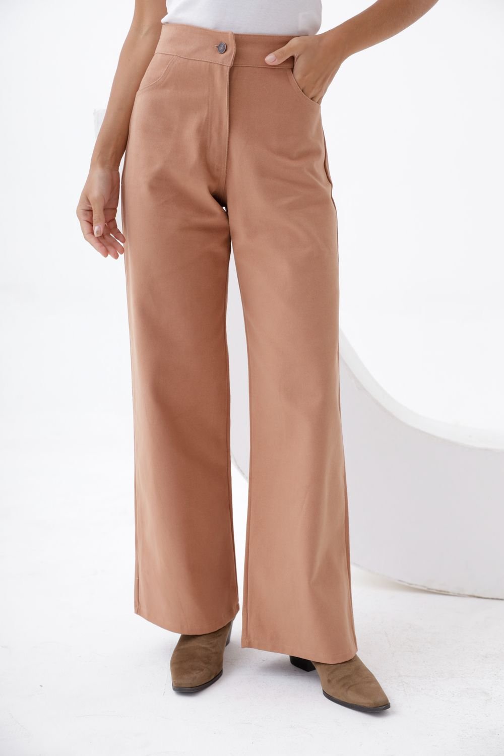 Pantalón Clásico Wide Leg de Gabardina Mocca Rígido