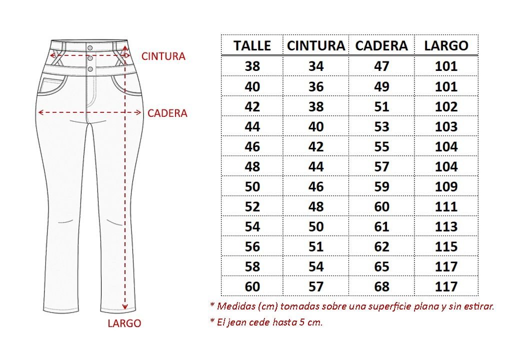 | Talle Pantalon | 38, 40, 42, 44, 46, 48, 50, 52, 54, 56 |