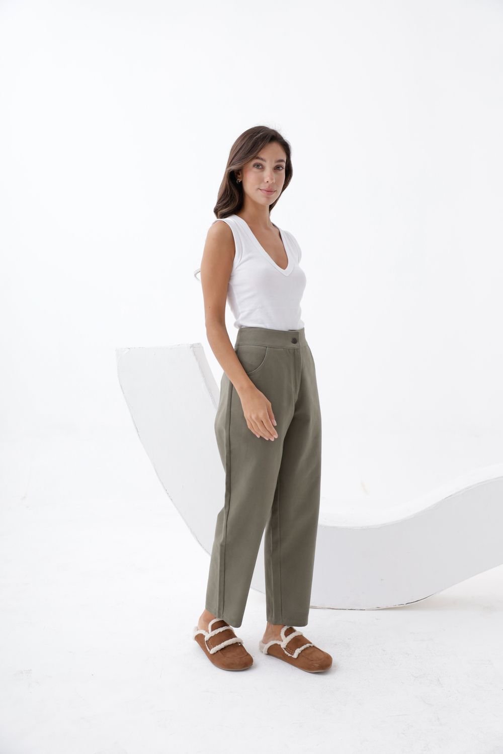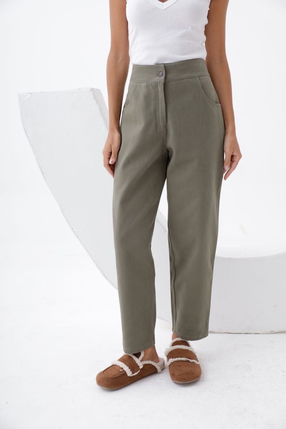 Mom Fit Suelto de Gabardina Verde (Rígido)