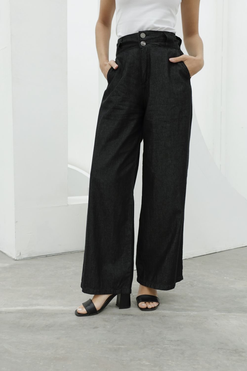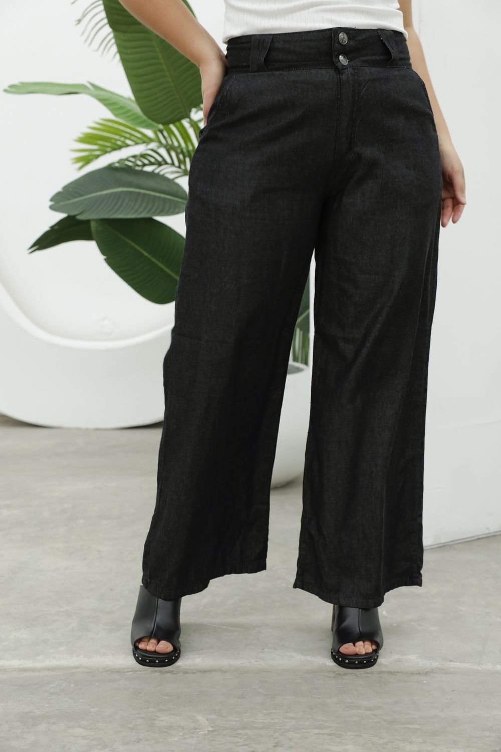 Palazzo con Elástico parte de atrás de la Cintura Negro